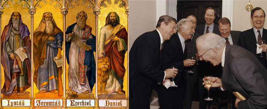 "Menjetek el, és öntsétek ki a földre Isten haragjának hét poharát! Elment azért az első, és kiöntötte poharát a földre; és gonosz és ártalmas fekély támadt azokon az embereken, akiken a fenevad bélyege volt, és akik képmását imádták."